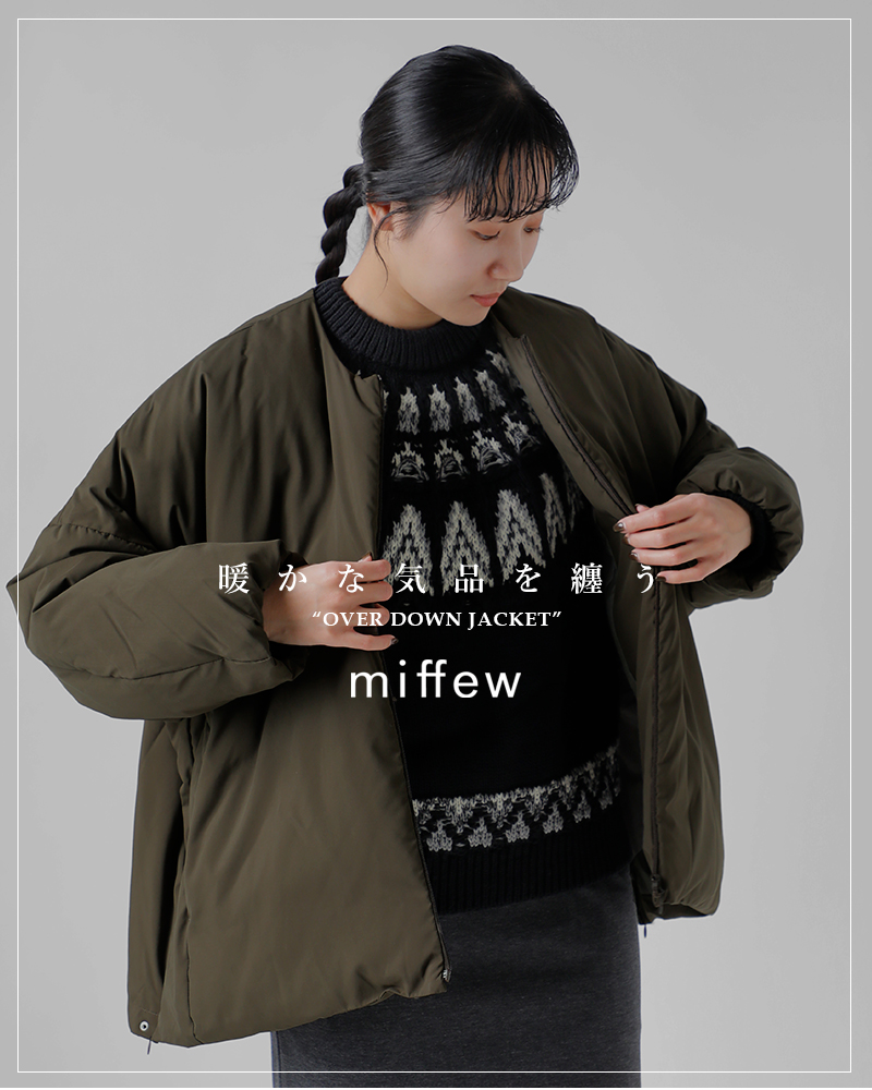 miffew ミフュー 撥水 帯電防止 ノーカラー オーバー ダウン ジャケット “OVER DOWN JACKET” few23wjk5111 2025aw新作 【サイズ・カラー交換初回無料】
