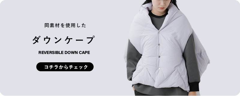 表地は経糸に20デニール、緯糸に50デニールのポリエステルフルダル糸を使用した生地を使用。合繊素材特有の光沢感を抑えたマットな表面感で肌触りもよく、着心地も軽やかな素材です。中綿はダウン90%、フェザー10%使用し、軽いのに温かさ抜群です。