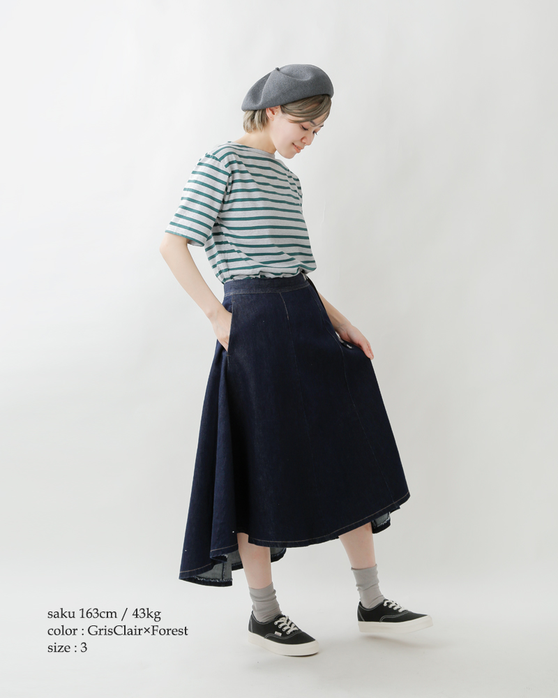 すっきりしたボートネックに、半袖はふつうよりやや長め。袖まわりがきれいに見えます。何度も手に取ってしまうような、お気に入りの一枚になってくれます。